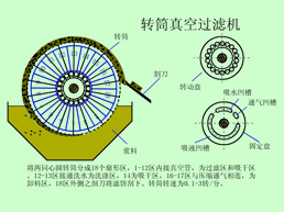 真空過(guò)濾機(jī)采用繞帶轉(zhuǎn)鼓真空過(guò)濾機(jī)可使濾布得到充分洗滌。如果懸浮液中的顆粒較重,沉降速度很快,則宜采用懸浮液在轉(zhuǎn)鼓上方加料的結(jié)構(gòu)或內(nèi)濾面轉(zhuǎn)鼓真空過(guò)濾機(jī)。如果懸浮液中的固體顆粒很細(xì)或形成可壓縮性濾渣,則應(yīng)在轉(zhuǎn)鼓過(guò)濾面上預(yù)先吸附一層固體助濾物,或在懸浮液中混入一定量的固體助濾物,使濾渣較為疏松,可提高過(guò)濾速度。