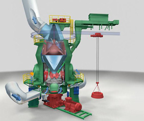 煤立磨機(jī)由電動(dòng)機(jī)驅(qū)動(dòng),通過(guò)行星減速機(jī)帶動(dòng)磨煤機(jī)磨盤轉(zhuǎn)動(dòng),磨盤上的2-4個(gè)磨輥在磨盤的帶動(dòng)下轉(zhuǎn)動(dòng),經(jīng)落煤管進(jìn)來(lái)的原煤分布在磨盤上,由于液壓加載力的作用,磨輥與磨盤之間產(chǎn)生擠壓使大顆粒原煤被壓碎。靠磨輥與磨盤的相對(duì)運(yùn)動(dòng)產(chǎn)生的滑動(dòng)摩擦力實(shí)現(xiàn)小顆粒煤被碾碎;原煤在磨內(nèi)被碾磨的同時(shí),被通入立磨機(jī)的熱風(fēng)(一般在300℃以下)烘干掉原煤的水分,達(dá)到成品煤粉規(guī)定的要求;碾磨后的煤粉,通過(guò)一次風(fēng)輸送進(jìn)入分離器進(jìn)行分離。分離出合格的煤粉被輸送至煤粉倉(cāng),不合格的粗煤粉返回到磨內(nèi)重新進(jìn)行研磨。
