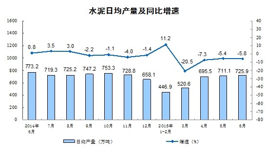 {浙江同力轉(zhuǎn)載}根據(jù)國家統(tǒng)計局公布的數(shù)據(jù)顯示,2015年6月份水泥產(chǎn)量21,776萬噸,同比下降5.8%;2015年1-6月份全國規(guī)模以上水泥產(chǎn)量107,714 萬噸,同比負增長5.3%。單月水泥產(chǎn)量和累計水泥產(chǎn)量同比下滑幅度繼續(xù)擴大 。