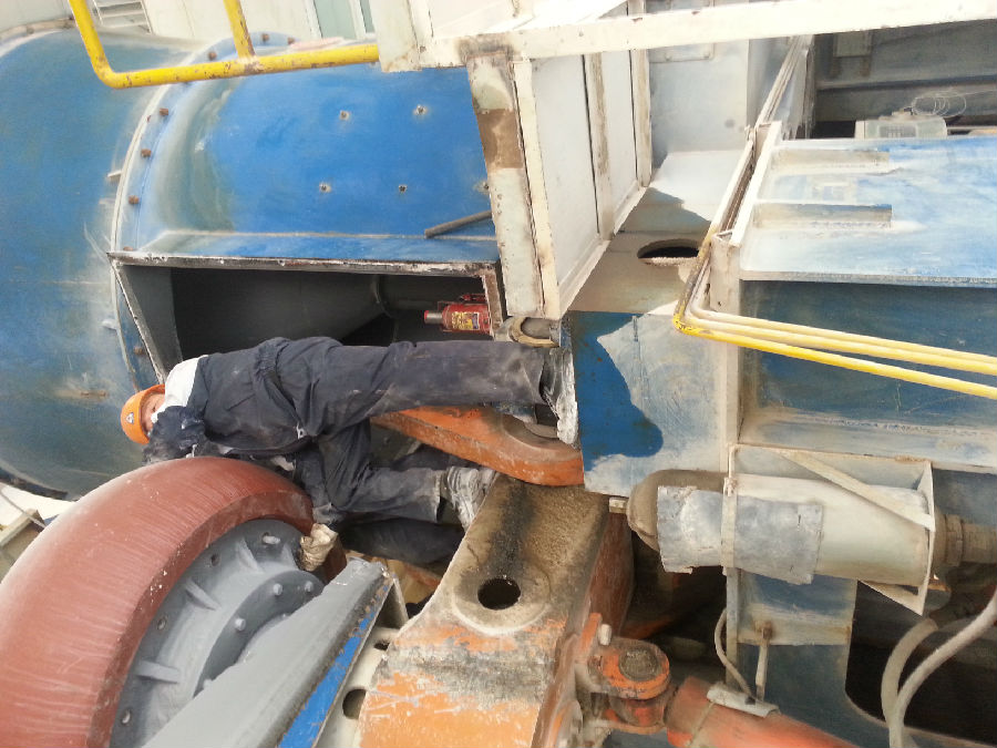 大型立磨工作是電動機通過減速機帶動磨盤轉(zhuǎn)動,物料從下料口落到磨盤中央,在離心力的作用下向磨盤邊緣移動并受到磨輥的碾壓,粉碎后的物料從磨盤邊緣溢出,同時被來自噴嘴環(huán)(風(fēng)環(huán))高速向上的熱氣流帶至與立磨一體的高效選粉機內(nèi),粗粉經(jīng)分離器分選后返回到磨盤上,重新粉磨;細(xì)粉則隨氣流出磨,在系統(tǒng)的收塵裝置中收集下來,即為產(chǎn)品。沒有被熱氣流帶起的粗顆粒物料和意外進(jìn)入的金屬件從風(fēng)環(huán)處沉落,由刮料板刮出后,經(jīng)外循環(huán)的斗提機喂入磨內(nèi)再次粉磨。大型立磨是通過采用粒間層壓原理設(shè)計的特殊磨粉腔及與之相匹配的轉(zhuǎn)速,取代傳統(tǒng)的單顆粒磨粉原理,實現(xiàn)對物料的選擇性磨粉的,可以顯著提高產(chǎn)品細(xì)料比例和立方體含量,極大程度上減少針片狀物料,實現(xiàn)成品粒度均勻,粒型優(yōu)美。但是如果大型立磨出現(xiàn)問題,可能出現(xiàn)出料不均勻的現(xiàn)象,為什么會出現(xiàn)這種問題?經(jīng)過分析總結(jié),主要有以下四個原因。