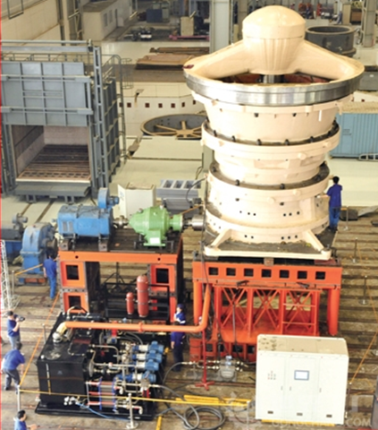 我公司生產(chǎn)的旋回破碎機(jī)均為液壓支承結(jié)構(gòu)。破碎機(jī)啟動前,首先打開油泵向缸內(nèi)充油,當(dāng)破碎圓錐上升到工作位置后,關(guān)閉截止閥,同時停止油泵。這種結(jié)構(gòu)的破碎機(jī)可方便地調(diào)整排礦口尺寸,使用戶獲得滿意的產(chǎn)品粒度和產(chǎn)量。當(dāng)非破碎物落入破碎腔時造成破碎力增加,系統(tǒng)油壓也隨之增高,油缸內(nèi)的油被壓入蓄能器中,從而使破碎圓錐下降,排礦口增大,排除非破碎物。非破碎物排出后,在蓄能器的作用下,油經(jīng)單向節(jié)流閥比較緩慢地壓入油缸中,從而使破碎圓錐很平穩(wěn)地自動復(fù)位。當(dāng)非破碎物尺寸過大不能通過排礦口排出時,系統(tǒng)油壓繼續(xù)升高達(dá)電接點壓力表調(diào)定值時,控制系統(tǒng)可自動停止主電機(jī),以保證設(shè)備安全。